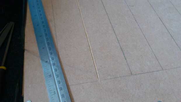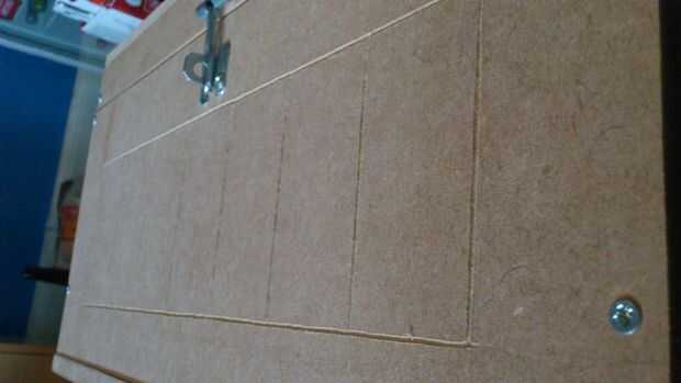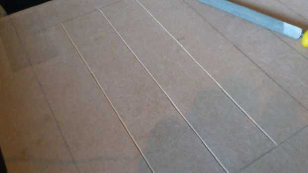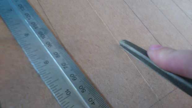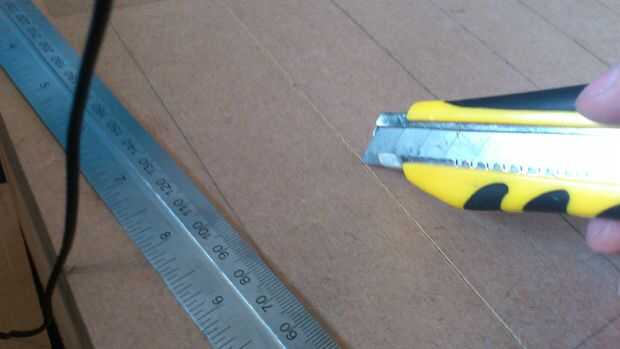 Con un cuchillo y una regla de metal marcó en la madera en las líneas dibujó de nuevo en la planificación. Esto fue para darle a la caja de un aspecto más 3D. Además esto hizo más difícil de pintar como no tengo muchos pinceles pequeños.