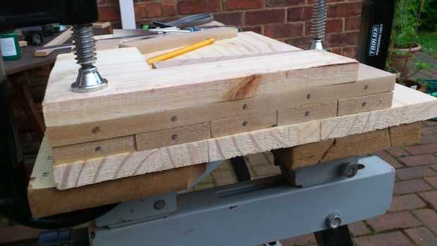 Usando un taladro de 5mm para los orificios para taquetes y la dremel broca para los orificios que procedí a marcar y taladrar los orificios necesarios para armar estos. Esto se demuestra mejor en las notas del cuadro. Asegúrese de que a la madera para hacer más fácil la perforación y sujete el taladro en ángulo recto a la madera.