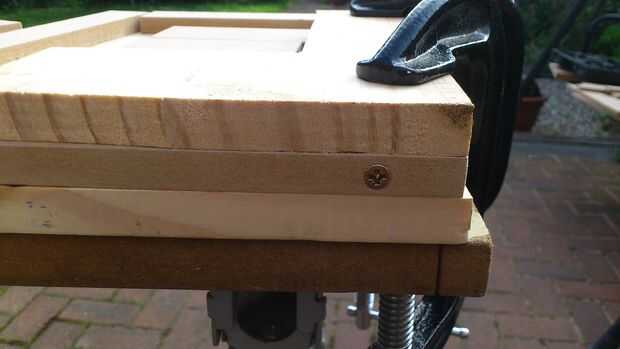 Esto resultó ser un poco de una molestia y mirando hacia atrás debería probablemente de otra pieza de MDF y utilizar cualquier madera de repuesto y chatarra para futuros proyectos. Aquí aprendí que atornillar en MDF sin crear un agujero previo con una taladro/dremel se romperá la madera. (aprender algo nuevo todos los días)