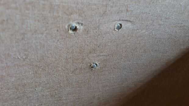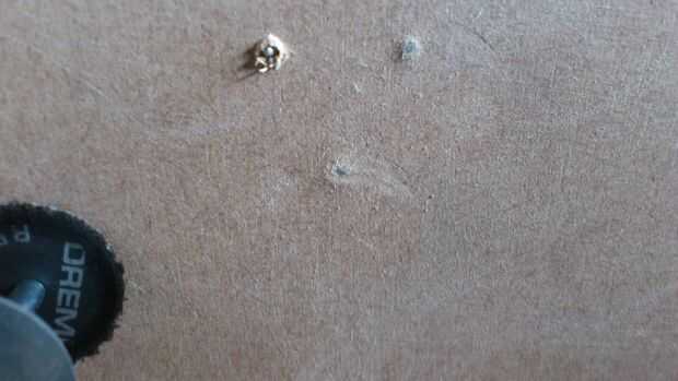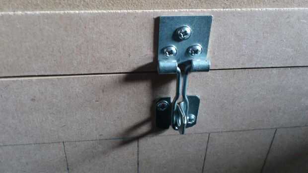 Los tornillos de las bisagras y el pestillo pasó todo el camino a través de mi madera. Utilizando una dremel tendrá que pulir los tornillos en el interior.