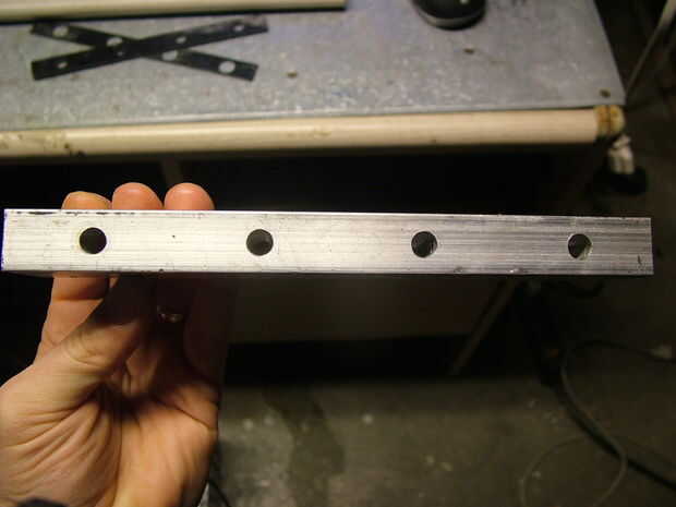 Hacer la perforación! Puede ayudar a tomar la barra de aluminio grande para una tienda de máquina, ya que no es fácil de perforar a través de 1.5" de aluminio con precisión. Ver todas las fotos de abajo para notas en agujeros y tamaños de brocas de perforación.