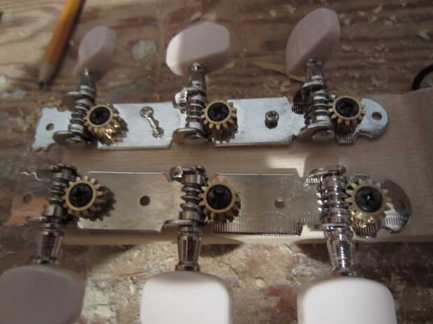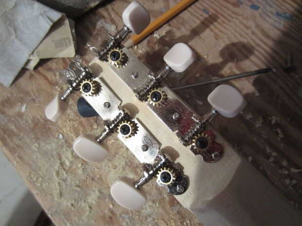 Una vez que sintonizadores encajan perfectamente (o al menos adecuado) en el cabezal es sólo una cuestión de fijación tornillos ellos, vienen en la caja, figura hacia fuera.