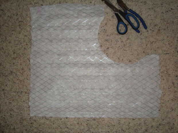Cortar un trozo que cubra completamente la apertura del flujo de aire trasera en el ventilador. Use tijeras viejas - cortan a través de la malla de alambre pero dañan un poco. Usando cortadores de alambre de la malla solo para un primer paso a trabajar demasiado. Utilizar tijeras para cortar el filtro sí mismo.