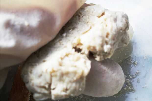 Se endurecerá rápidamente - a unos 10 minutos. Compruebe la textura enrollando con las manos.