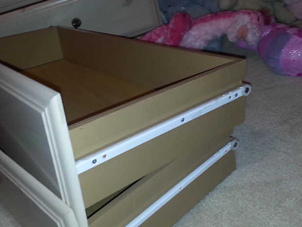 Me decidí a tomar algunas cuerdas y lazo en el extremo posterior de los cajones de deslizar la parte que se adjunta a la dresser en sí mismo... y entonces otra vez en la parte delantera a la parte unida al cajón se... Sólo necesita la cadena para hacer este trabajo, utiliza algo fuerte pero delgado... He utilizado un cable viejo porque mi línea de pesca era afk...