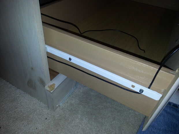 Poner el cajón de nuevo, aflojar la parte delantera con los tornillos en la diapositiva montada en el mismo cajón... lazo de la cadena a través de como se muestra.