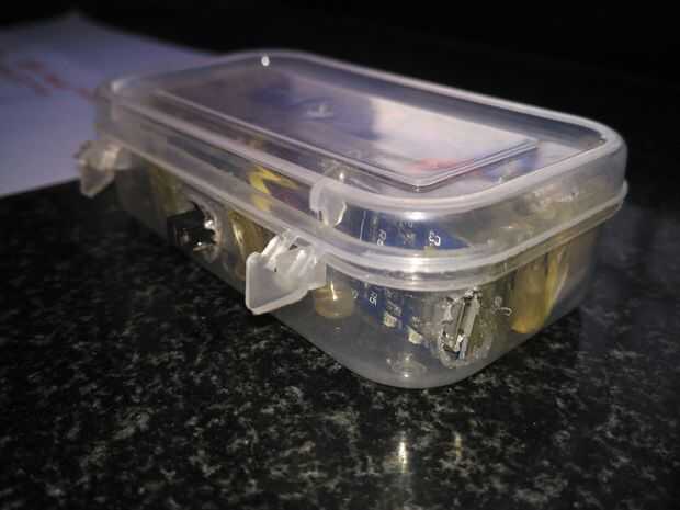 Hecho 4) ranuras en la caja usando el soldador (punta vieja).