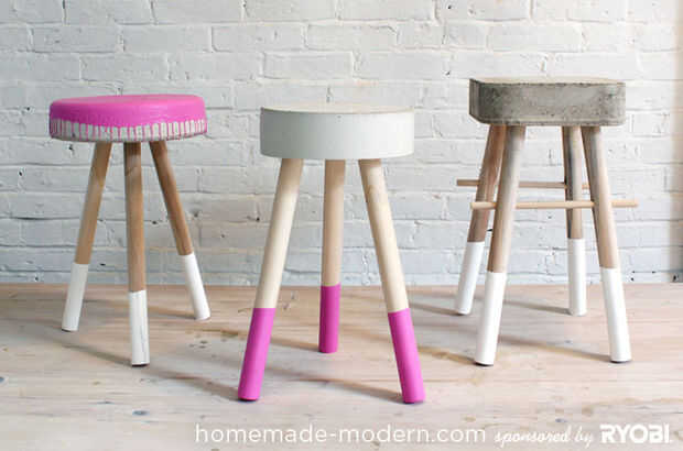 El DIY puzzle heces muestra el abilty RYOBI 6.1 amplificador Variable velocidad de Sierra de calar de cortar suavemente las curvas a través de 2 capas de madera contrachapada de ¾". Estos taburetes son ideales para los niños y pueden ir en una sala d