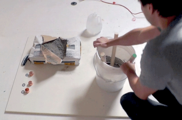 Prebenda los lados de la cuchara hacia afuera un par de veces en cada dirección para aflojar el concreto; Retire las heces por las piernas.