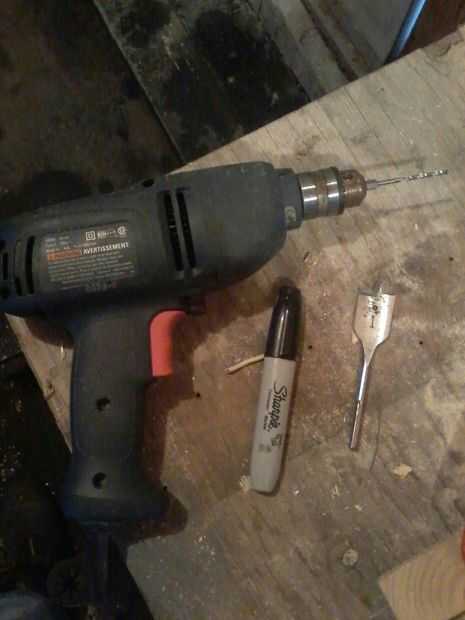 4. taladrar con madera grande del alesaje y del pedacito de taladro de 1/8