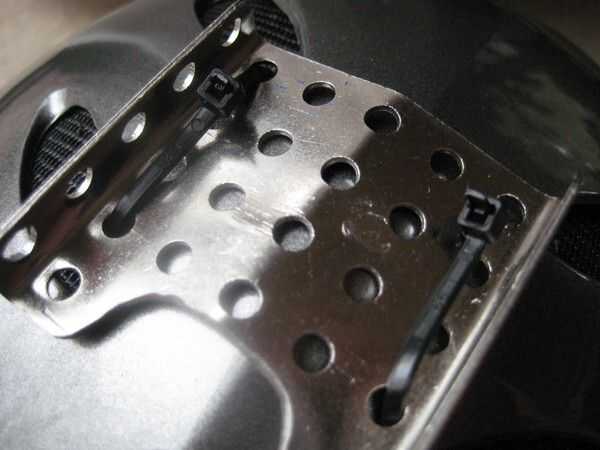 Alinee los agujeros en la placa base con orificios en el casco y seguro con bridas.
