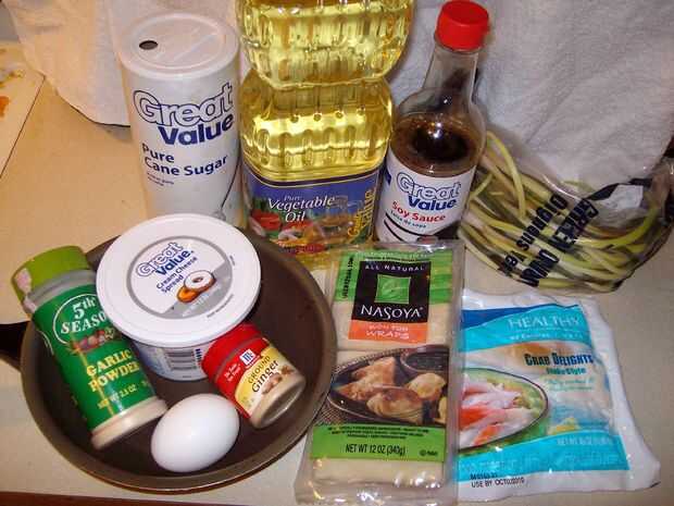 Paquete de won ton wrappers (encontrado en la sección étnica o refrigerado). La mayoría tienen como 50 vueltas, si usted quiere hacer que muchos simplemente doble el relleno. Si tienes extra, usted puede congelar durante un mes en una bolsa de congelador de tupperware o zip-top.
