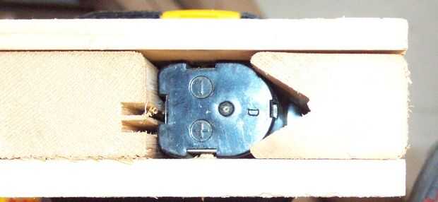 El portapilas debe emparedado el vástago del paquete de batería. Los contactos deben tocar ambos pack de la batería. Mi paquete fue afilada, y así los bloques no son cuadrados con los extremos. Vi limpiar los extremos cuando terminé con la tabla.