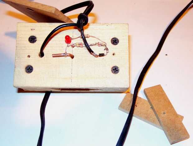 Suponiendo que todo ha funcionado hasta el momento, es hora de cerrar para arriba. Cortar dos tiras de espaciador para mantener la cubierta del aplastamiento de la electrónica. Utilicé una pieza delgada de madera prensada. Haga agujeros en el tablero duro y los espaciadores al mismo tiempo.