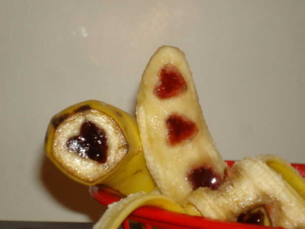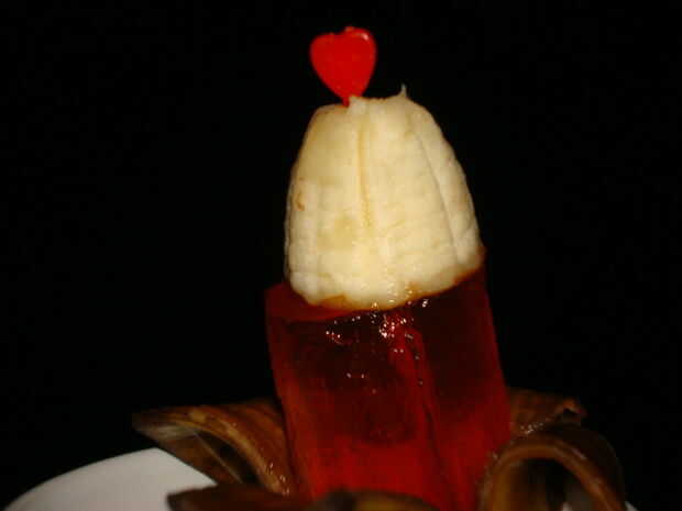 Este tutorial le mostrará como hacer gelatina con zumo de fruta y también le mostrará cómo hacer diseños de corazón en plátanos así como usar gelatina para llenar un plátano. He visto escrito sobre el plátano y gelatina llena de fruta, pero nunca he visto un plátano con gelatina de zumo de fruta o formas en los plátanos del corazón. Estas están destinadas a consumirse el primer día para una mejor apariencia. Este instructable fue inspirado por el concurso de San Valentín. Vamos a empezar!