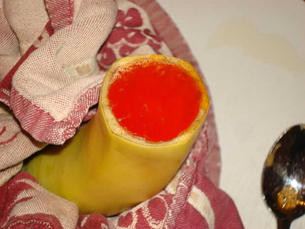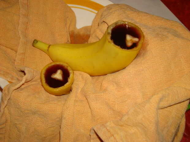 Llene el plátano con gelatina.
