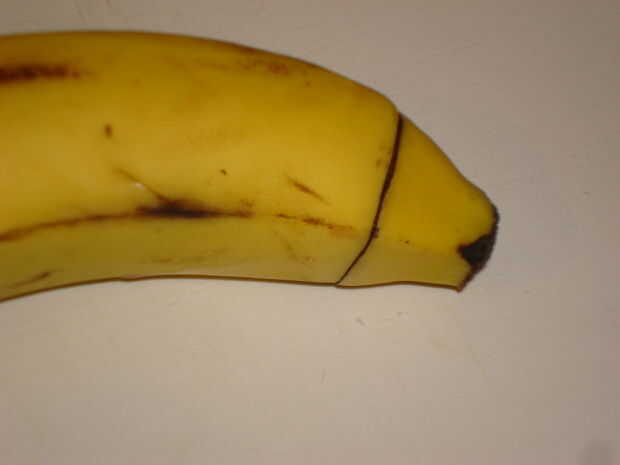Corte una forma Cruz con el cuchillo en el plátano.