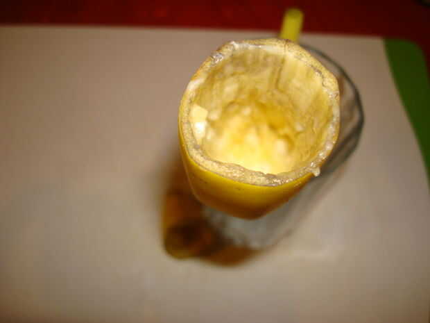 Coloca el plátano en un recipiente que lo vertical para que la gelatina no se derrame.