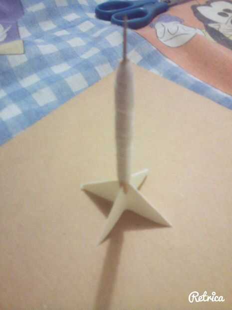 Finalmente adherir el papel al dardo, como se ve en la imagen y agregar el pegamento.