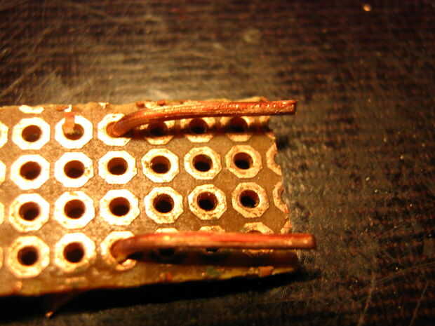 Muy a menudo estoy construyendo circuitos en placa perforada y muchos enlaces de corta alambre para las pistas del puente. Aquí es una manera de hacer rápidamente enlaces cortos precisos. Para más enlaces, mira mi NiftyBender.Para hacer un enlace,