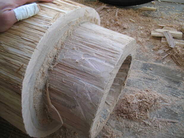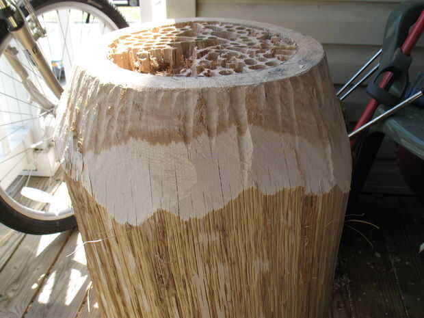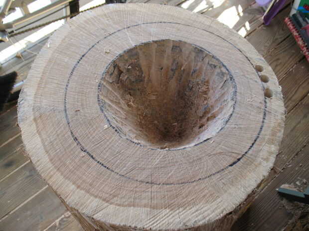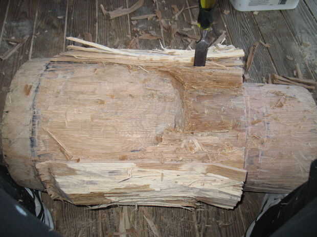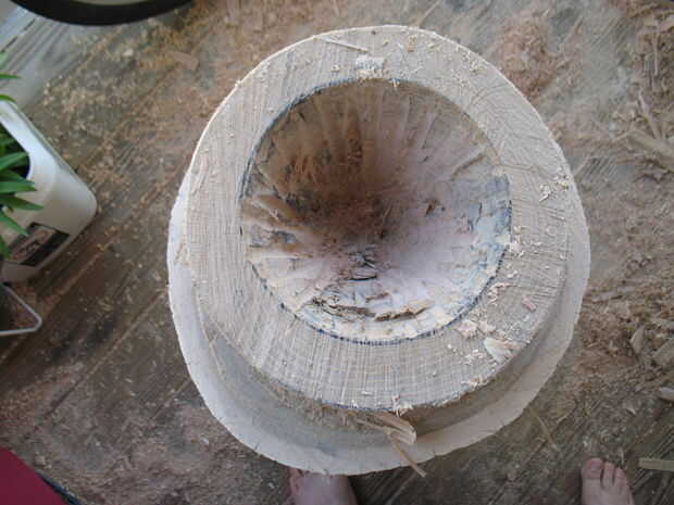 ~ Foto 2: utilicé el 3/4" bit para comenzar a ahuecar la parte superior y utilizar una sierra de mano para empezar a formar el exterior...