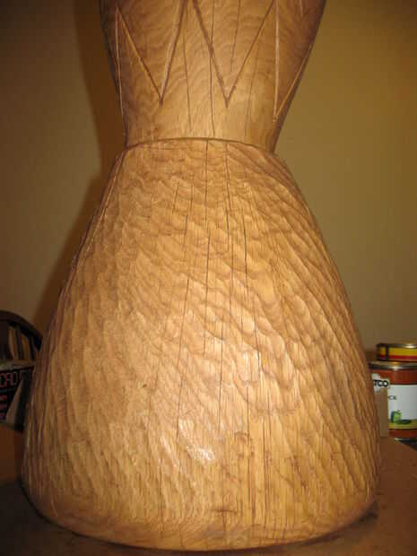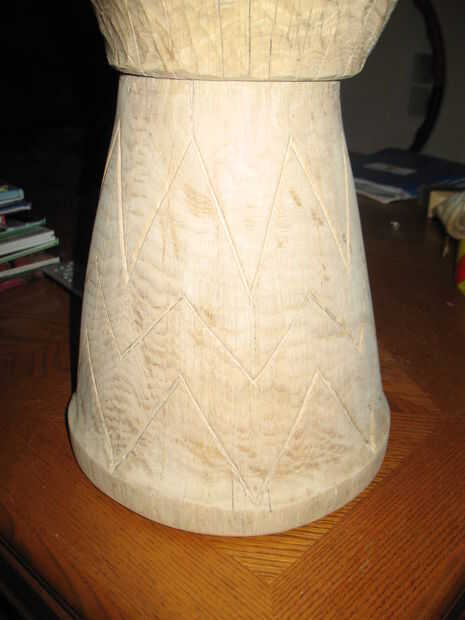 Las dos siguientes fotos muestran el tallado en la base... No es que impresionante, pero es mejor que dejarlo liso... Además, soy un técnico de reparación de equipo, no un tallador de madera...