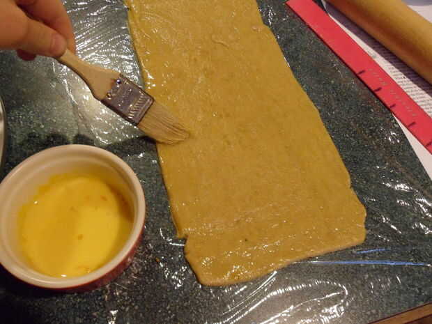 Cepillo de la colada del huevo en los bordes exteriores del rectángulo de masa.
