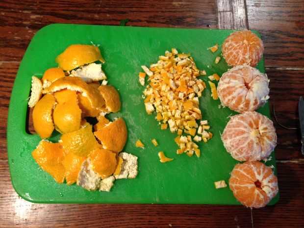 Lave sus ingredientes frescos y luego los secas con una toalla limpia. Se utilizó sólo la cáscara de la naranja para mi té, picado en trozos muy pequeños, delgados e hizo lo mismo con la raíz de jengibre.