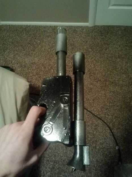 -El barril era un tubo de media pulgada roscado en el extremo que fija en la culata de la pistola. Al final del cañón fue guarnición recta de pvc de media pulgada.