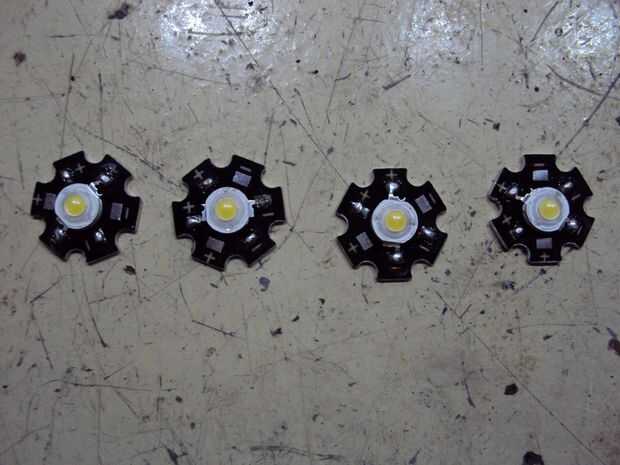 En este paso, usted tiene que soldar el LED los granos a los disipadores de calor.