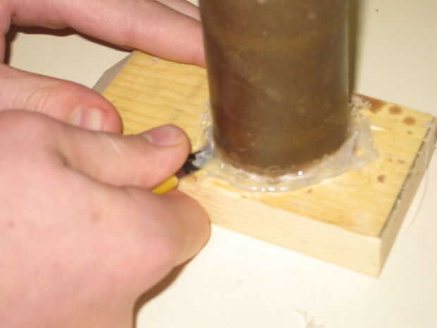 Primero derrite que la cera en un aluminio puede surgió en agua hirviendo. Tomar el tubo de cartón y caliente pegamento un extremo a una pieza de madera de desecho que es apretado del agua. Cuando la cera se haya derretido viértalo en el tubo (fijación motor vibrante ahora para evitar burbujas de hundimiento). Si tu con la mano había tallada método puede Quite el y agitar mientras se seca. Para quitar el poder cortarlo o simplemente relajarse, lágrima lo (cuidado su sharp) esto puede hacerse también con el tubo de cartón, pero una mejor forma es emergidas el tubo en agua hasta que esté empapado a fácilmente de la cera sin pegarse.