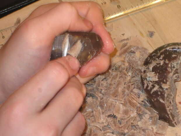 para el método de torno trazar el contorno de la pieza en el más pequeño pedazo de metal de desecho y corte a lo largo con las tijeras se corta una versión 2d de su objeto. Ahora aconsejo afilado este nuevo encargo herramienta de corte con el archivo pero su probablemente irregular lo suficiente como para cortar en su propio. Luego fíjela esta cuchilla en el soporte de la herramienta y la pieza de cera en el mandril () y mover la hoja de encargo lentamente en la cera hasta que finalmente el objeto que desea se completamente terminado.