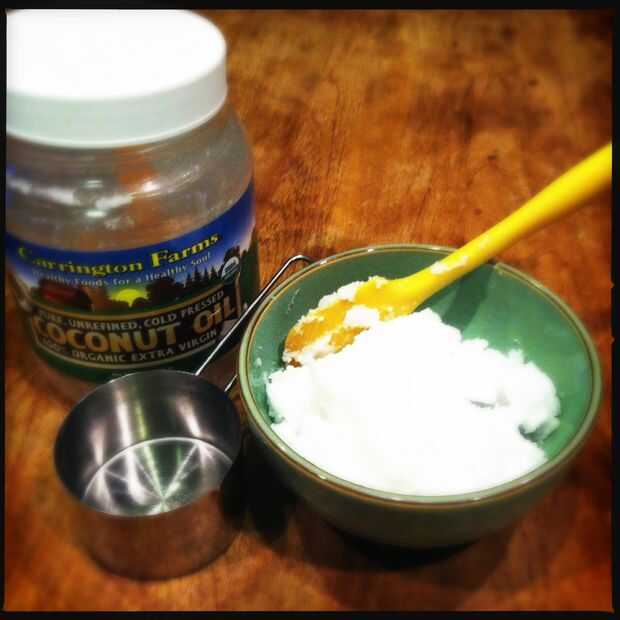 Bajo estrecha vigilancia *, derretir suavemente alrededor de 1 1/2 tazas de aceite de coco en una cacerola pequeña sobre la estufa. No se necesita mucho calor para derretir el aceite. Tan pronto como se derrita 1/3 de aceite, sacar el calor y continuar revolviendo, el resto se derretirá pronto después.