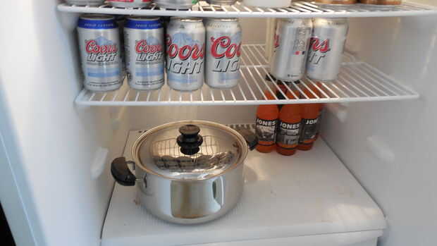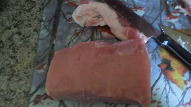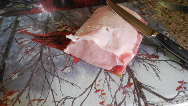Yo era demasiado impaciente para esperar y un cuchillo algo fastidioso para tallar la carne, haber dejado mi buen cuchillos en mi apartamento. Mis padres habían ofrecido amablemente el uso de su cocina, nevera y su limpieza servicios a cambio de tocino.