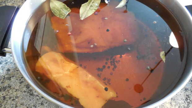 Borbón tocino casero de salmón ahumadoPaso 1: la curación por 36 horas crio vac salmón y curación en la nevera por 36 horasPaso 2: salmón curado curar salmones en puré crujiente tocino, azúcar, sal, bourbon, jarabe de arce y pimienta negraPaso 3: pel
