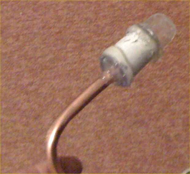 cortar un trozo corto de tubo de cobre y empújelo a través de la mitad uno de los agujeros en la tapa