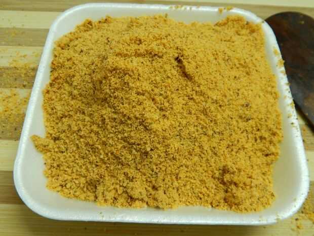 Moler la sal y la guindilla roja primera primero agregar los demás ingredientes y muele a un polvo grueso (que es cómo me gusta)!