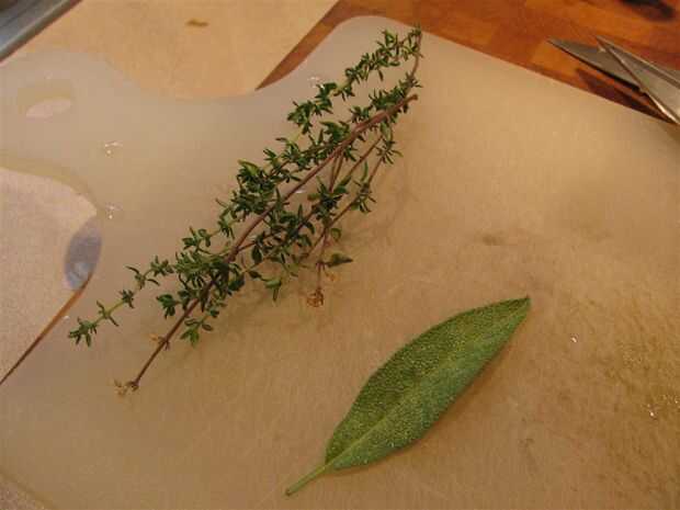 Usé tomillo fresco de mi jardín de la hierba y una hoja de salvia para complementar a la salvia seca. Esta es mi primera vez con Salvia fresca, por lo que no estaba seguro de lo potente que sería apenas fui con una hoja. Sabio no es el sabor dominante para esta salchicha. Pssst... de ajo.