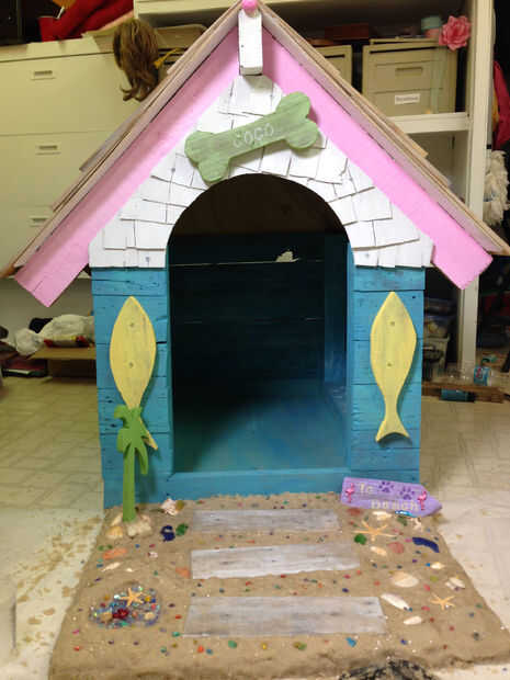 Me pregunté si haría un perro relacionados con arte. Me dio pensar y decidió que quería estirar mis chuletas de fabricación y hacer una caseta de perro. Este es por lejos el proyecto más grande que he probado. Yo quería que fuera un Cayo casa de playa inspirado en caseta de perro - como alguien construyó una casa colorida, allí en la playa. Quería ser fuerte, pero quería que se vea como una persona que ha decidido poner allí. Y por supuesto tenía que ser de colores!