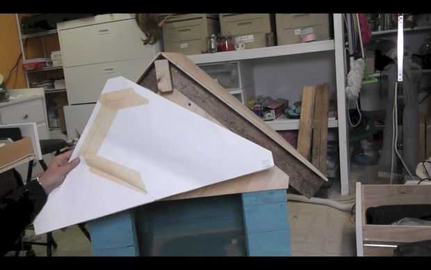 Dibujaba y recortar una plantilla de papel del panel frontal, antes de cortar de madera. Quería asegurarse de que funcionaba. Me corte la pieza de madera y temporalmente lo atornillan en su lugar. Porque quería una abertura arqueada, tomé un lápiz atado al extremo de una cadena. Encontré el centro de la abertura y medida - con cadena - cuánto tiempo necesita para poder asegurarse de que alinea con los lados. Luego lo destornilla y corte del arco con la sierra caladora. Creé una obra similar para la parte de atrás, pero no tengo que cortar un arco en aquél.