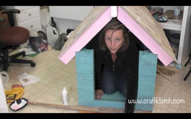 Pasé un poco de tiempo dentro de la caseta del perro, cortando clavos que podrían sido meter a través, de la instalación del techo. También quería Asegúrese de que coco encajarían en él. Todavía así... tan buena!