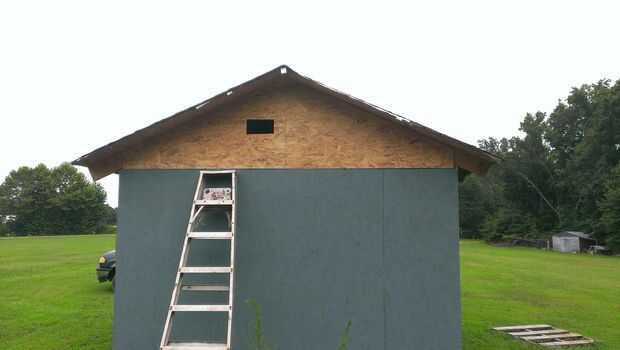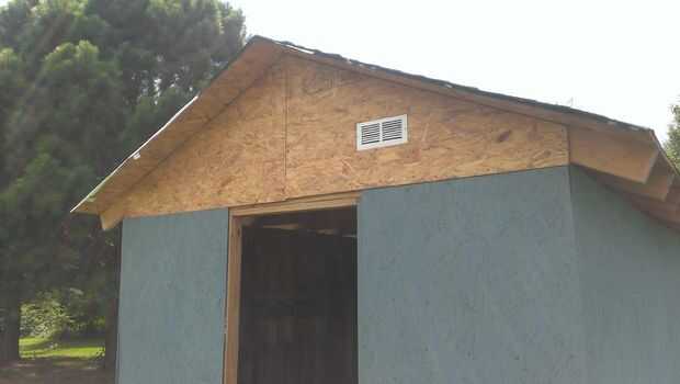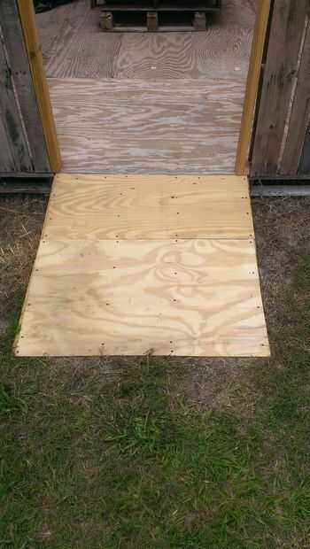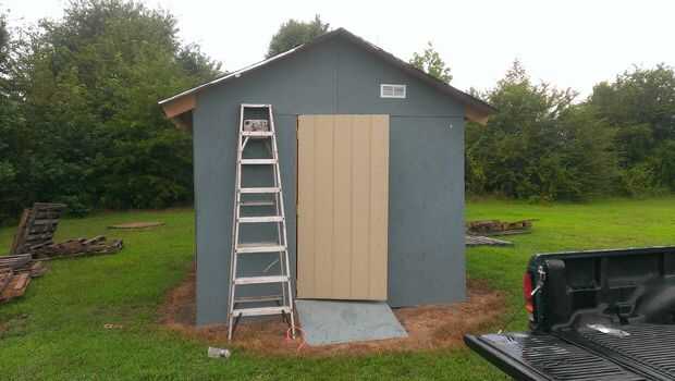 Por último hemos dejado para los últimos pasos de este chico poco. Ahora que nos levantamos todas las paredes y el techo todo lo que quedaba en el exterior fue construir una puerta, una rampa y lanzar algunas pinturas en las paredes. La puerta estaba hecha de una hoja de tablero de osb con un bastidor construido en el interior de la misma. La rampa fue realizada para que una sierpe del jardín podría me rodado fácilmente dentro y fuera de la caseta, la rampa también se hizo así que era un pie largo para cada pulgada era alta (hecha de madera de desecho). después de conseguir la puerta y rampa hizo las paredes fueron pintadas con pintura de duramax de valspar (dos capas) para ayudar a proteger de las inclemencias del tiempo. Fuimos con un color gris/azul para que coincida con la casa.