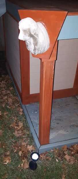 Luego usé un foco de luz solar del paisaje hasta la estatua de cabeza de perro de rincón de luz.