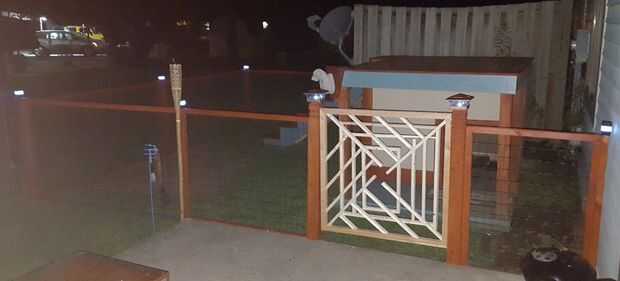 He utilizado dos, más glamoroso busca, 4 x 4 LED solar post casquillos para la abertura de la puerta y luego por el resto del perímetro cerca usé tapas de poste solar de LED de 2 x 2.