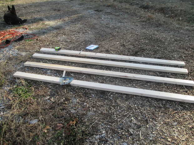 1. medida/división (4) 2 x 4 x 8 "s en 3 partes, ~ 32" por pieza