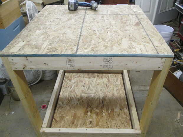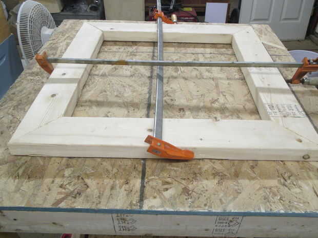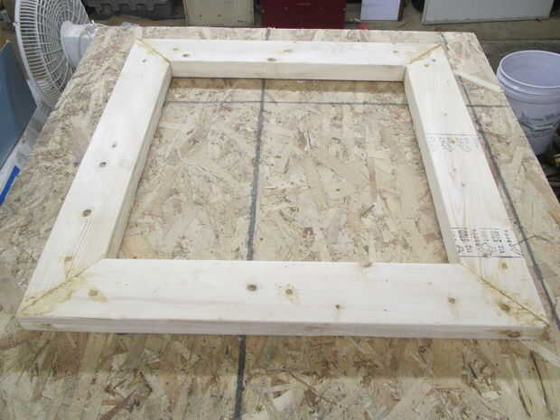 1. corte (2) piezas de madera contrachapada 35 "x 35", coloque en la parte superior y parte inferior del marco