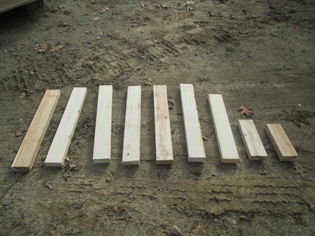 1. a partir de (2) 2 x 4 x 8 de corte (6) 25" trozos, cortar 1 de trozos restantes de 11" y 9"
