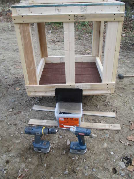 7. lugar 5/8" superior a la madera contrachapada, asegure con tornillos de 1" (éstos enmarcan las ventanas)