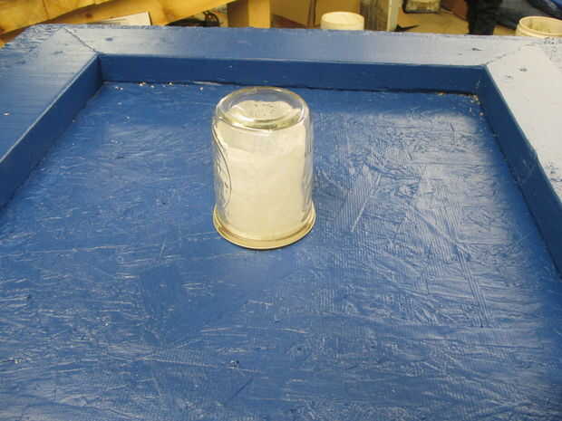 luego cubrir un rectángulo plástico con papel aluminio y pegamento al centro por debajo de la plataforma de piso