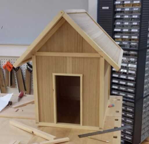 Me pregunté si haría un perro relacionados con arte. Me dio pensar y decidió que quería estirar mis chuletas de fabricación y hacer una caseta de perro. Este es por lejos el proyecto más grande que he probado. Yo quería que fuera un Cayo casa de play